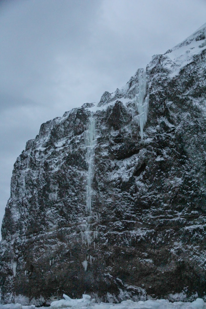 I spent most of the morning outside in a snow storm. You can see the snow blowing over the iceberg in the distance